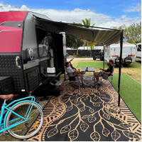 Measuring a generous 6 metres, this ethically made annex setup mat is meticulously woven from recycled plastic in soothing earthy tones. For extra strength, it is securely hemmed and includes 6 pegging eyelets for tie-down purposes on dirt or grass. Whether you're seeking additional space for relaxation at your campsite, the Growth Mat offers a perfect solution. Like all our recycled plastic camping and caravan mats, the Growth Mat is waterproof, reducing drying time even on damp ground.