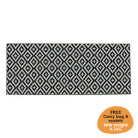 The main feature of this caravan pack is our stunning 'Diamond' mat in a generous 2.4x5m size. The black & grey colours will suit any colour scheme. Our large annex mats are the perfect caravanning companion - sand, dirt and muck are no match for our tightly woven recycled plastic, and you'll be so glad of the extra outdoor living space, especially if you're travelling with a family. As with all of our outdoor mats, it is ethically crafted, lightweight, soft & comfortable, yet sturdy. It is naturally waterproof and super easy to take care of - just a quick shake or sweep. It also has 4 eyelets for tie-down purposes, should you wish. When you're ready to move onto the next destination, just fold up and pop back into it's included recycled polyester carry bag with handy insulated side pocket.