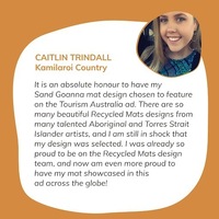 Indigenous artist, Caitlin Trindall designed this artwork with inspiration from her favourite camping spot in Burraga Dam, NSW where she visits with loved ones. Caitlin believes there is no better feeling than sinking your bare feet into the sand, dipping into the freshwater dam, and closing your eyes to listen to the sound of rustling gum leaves in the breeze. Burraga Dam is a place where Caitlin goes to feel refreshed, as the peaceful surroundings leave her feeling relaxed and free.