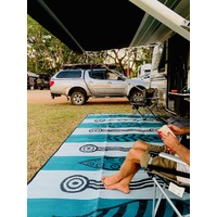 'Gum Leaves & Waterholes' is a contemporary Indigenous design, made with woven recycled plastic to create a reversible and portable outdoor living mat. It is perfect for protecting your patio or deck and makes for a great travelling or camping companion where additional ground needs to be covered. The mat's tight weave serves as a barrier against stones, itchy grass or insects while still allowing the circulation of airflow to help preserve the ground underneath. See how Recycled Mats' Indigenous designs can meet the outcomes of the Educational Curriculum.