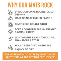 Discover a world of comfort with our classic designed 'Seedling' mat set. This pairing includes a generously sized 2.4 x 6m mat and a compact yet functional 2.4 x 2.4m mat, both adorned with the classic 'Seedling' pattern in a versatile colour scheme. AND YOU GET A FREE 0.8x1.8m BEACH MAT TO MATCH TOO!