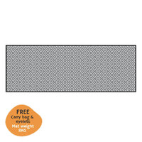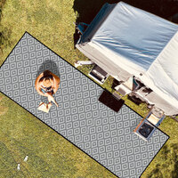 The 2.4 x 7m size is our largest mat, but still only weighs 8.5kg. You'll find there's plenty of space for the whole family to gather, whether it be for meals, games, or relaxing under your awning. The mat's tight weave serves as a barrier against the ground, whilst still allowing the circulation of airflow. For your convenience, this mat comes with 6 eyelets for tie-down purposes and also comes in a strong, recycled polyester carry bag.
