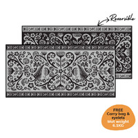 These mats are reversible. Photos show both sides of the same mat. Mat colours may differ slightly from the images shown due to the different inks used in individual print runs. Designed in Australia, manufactured in China or India. NOTE that sizes are +/- 5% due to weaving techniques in manufacturing and may not to be 100% as stated. If using on a slippery surface, non slip mesh recommended underneath.
