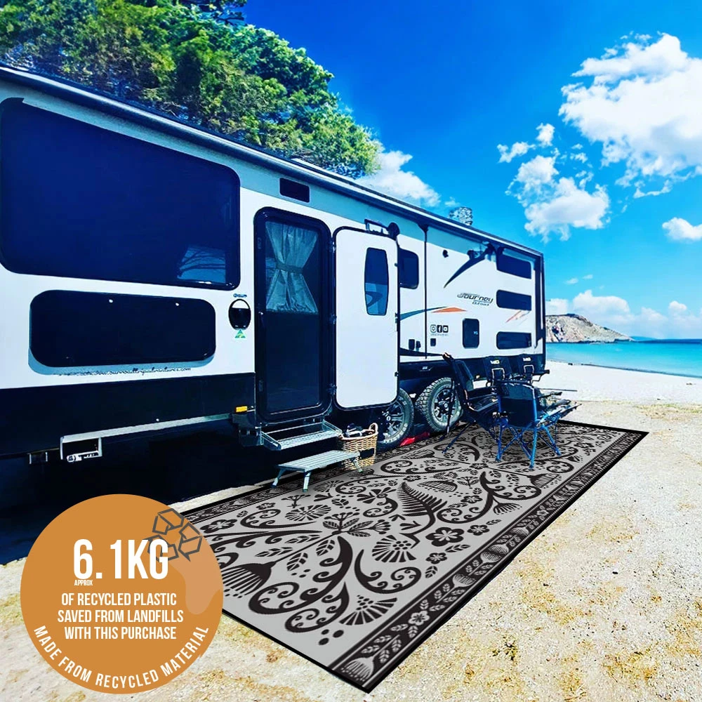 Like all our durable, comfortable outdoor mats, this mat is hard-wearing and easy to clean, without compromising the gorgeous design. A stylish ground cover that is soft to walk and lie on, durable, waterproof and UV treated – and made from recycled plastics, you're doing the right thing for the planet too.  The Pohutukawa Mat will make a great addition to your camping, caravanning or family picnic experience.