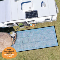 It is easy to care for, store and transport. Made from recycled plastics, food and drink spillages can be easily hosed off. For your convenience, all of our camping mats are UV resistant, have six eyelets for tie-down purposes, and come with a strong, recycled polyester carry bag that has a handy silver-insulated side pocket, so there's plenty of room for more than just the mat!
