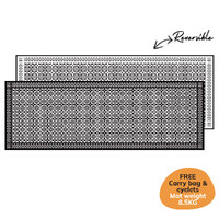 These mats are reversible. Photos show both sides of the same mat. Mat colours may differ slightly from the images shown due to the different inks used in individual print runs. Designed in Australia, manufactured in China or India. NOTE that sizes are +/- 5% due to weaving techniques in manufacturing and may not to be 100% as stated. If using on a slippery surface, non slip mesh recommended underneath.