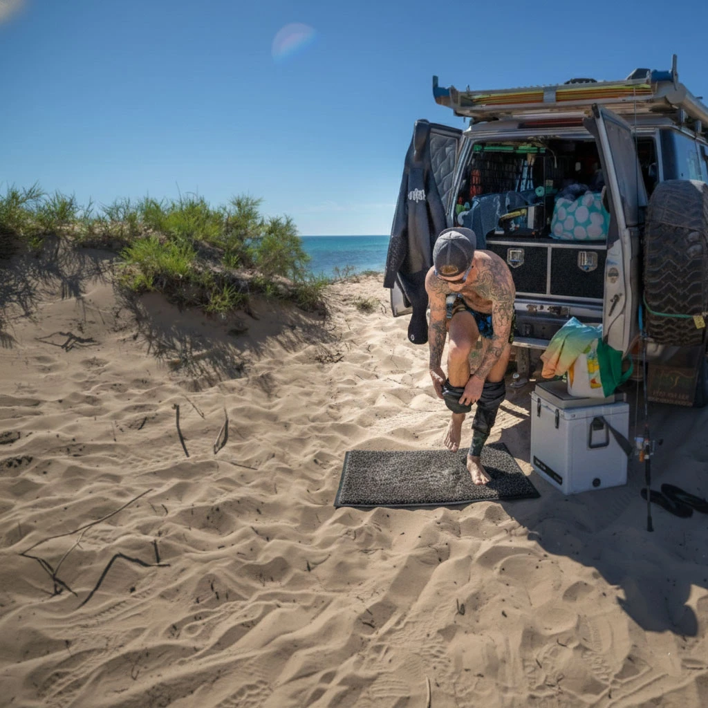 Muk Mats are ideal to be used when camping to clean feet before getting into your caravan or tent