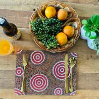 Printed in South Australia on recycled car tyres and PET bottles, these incredibly vibrant and durable mats add colour and culture to any office, dining table, art station or caravan.