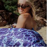 They are the perfect companion on your next trip to the beach, pool, picnic, or on your travels. Unfolded it measures a generous 80x180cm but folds down to fit neatly into a compact, drawstring microfibre carry bag. A different design on each side allows for a different choice each time, depending on your mood and setting.