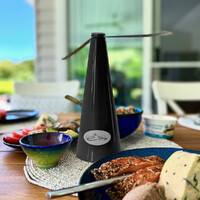 This neat little invention is a master at keeping flies and other annoying flying insects away from your food & drink, naturally, safely, and without the need for fly nets or toxic sprays. How does it work? The ShooAway deters flies by the gentle rotation of its soft-stop blades. Featuring patented holographic discs, the flexible blades will come to a soft stop if interrupted by your hand or plate, so are perfectly safe to use around children and pets.