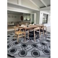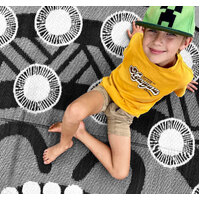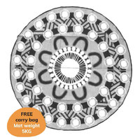 Come and let's celebrate with this large 3.6m round Indigenous design mat in black and grey tones
