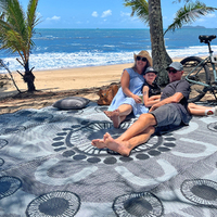 Like our entire range of Outdoor Mats, 'Celebration' is made from recycled plastic. It is easy to clean, easy to carry and easy to store. Wipe or sweep the dust and dirt away or, if your day's adventures have been particularly intrepid and messy, simply hose it down. It will dry in next to no time! When you're done, simply fold up and pop back inside the included sturdy, recycled carry bag! Check out this quick guide on how easy it is to care for your mat.
