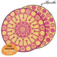 Eucalyptus Flower is a striking contemporary Aboriginal design recycled mat in floral pink and yellow