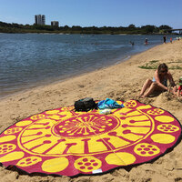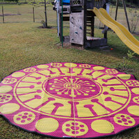 This circle time mat is a popular choice for classrooms and daycare centres because the 22 circles that surround this charming design are perfect for seating 22 little bottoms! Educators can encourage children to sit in a perfect circle for group time, storytime, 'show and share', or any teaching experience. Why not try counting games using the dots and patterns to hold their attention while you prepare the next class activity. See how Recycled Mats' Indigenous designs can meet the outcomes of the Educational Curriculum.