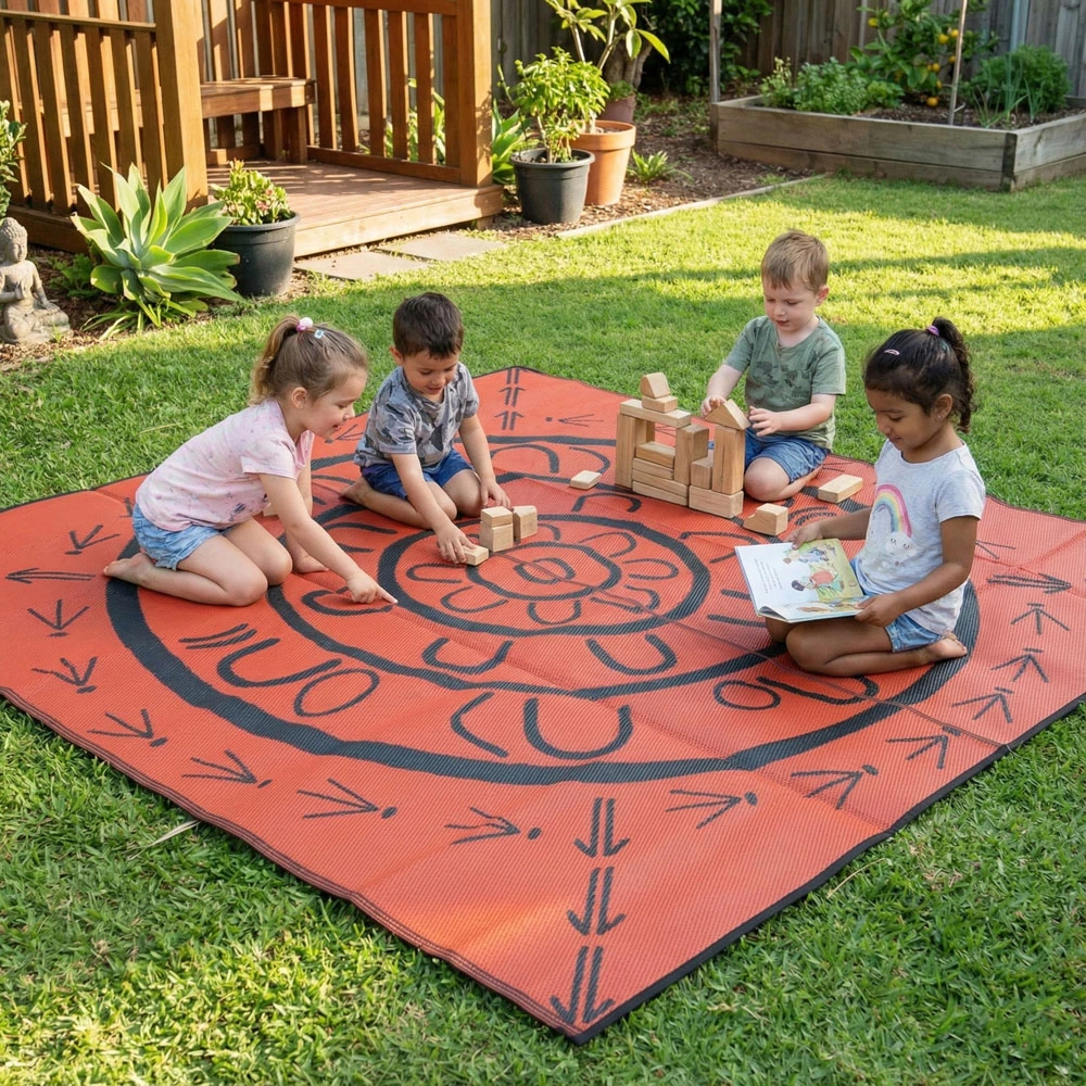 These large outdoor mats are perfect for schools and early learning environments. Use them indoors for storytelling, arts and crafts adventures, and as a game or transition mat. Outdoors, the kids can enjoy picnics and outdoor lessons on these mats too. See how Recycled Mat's Indigenous designs can meet the outcomes of the Educational Curriculum