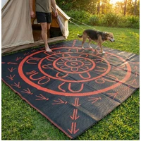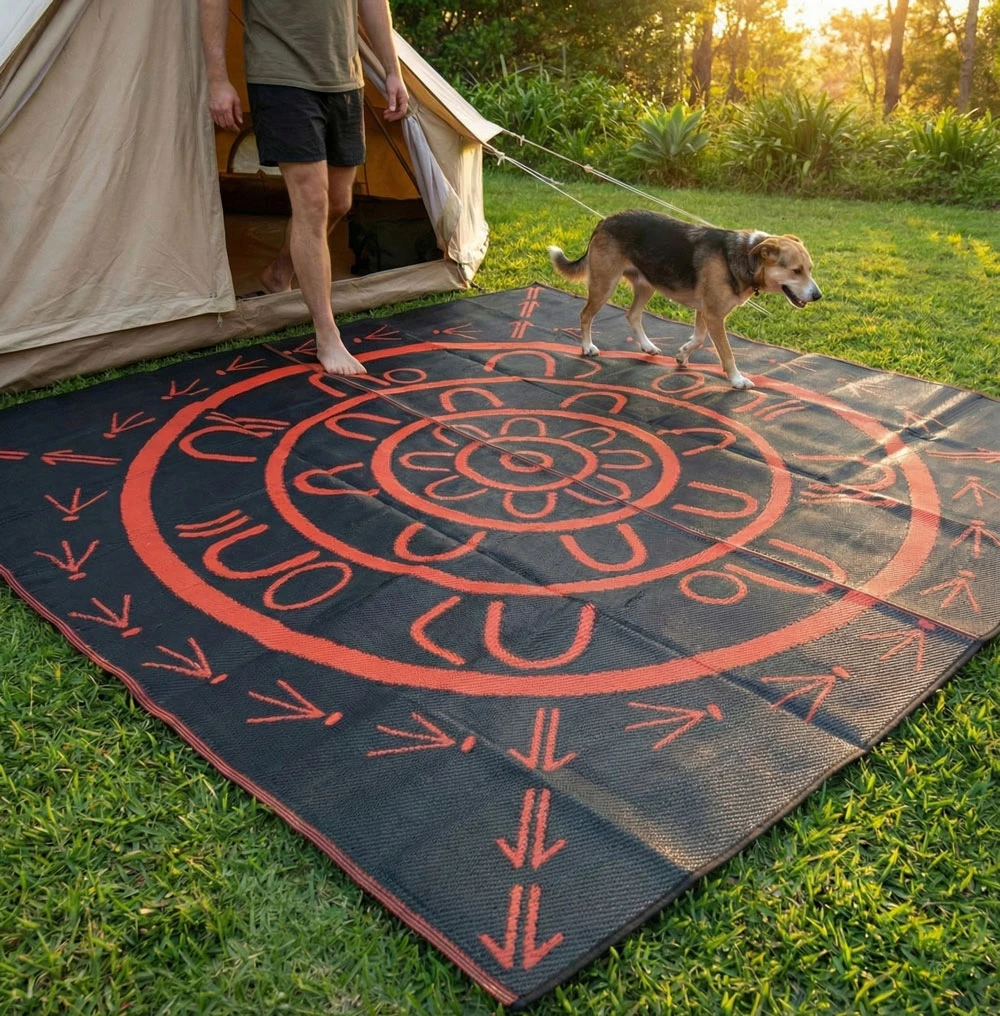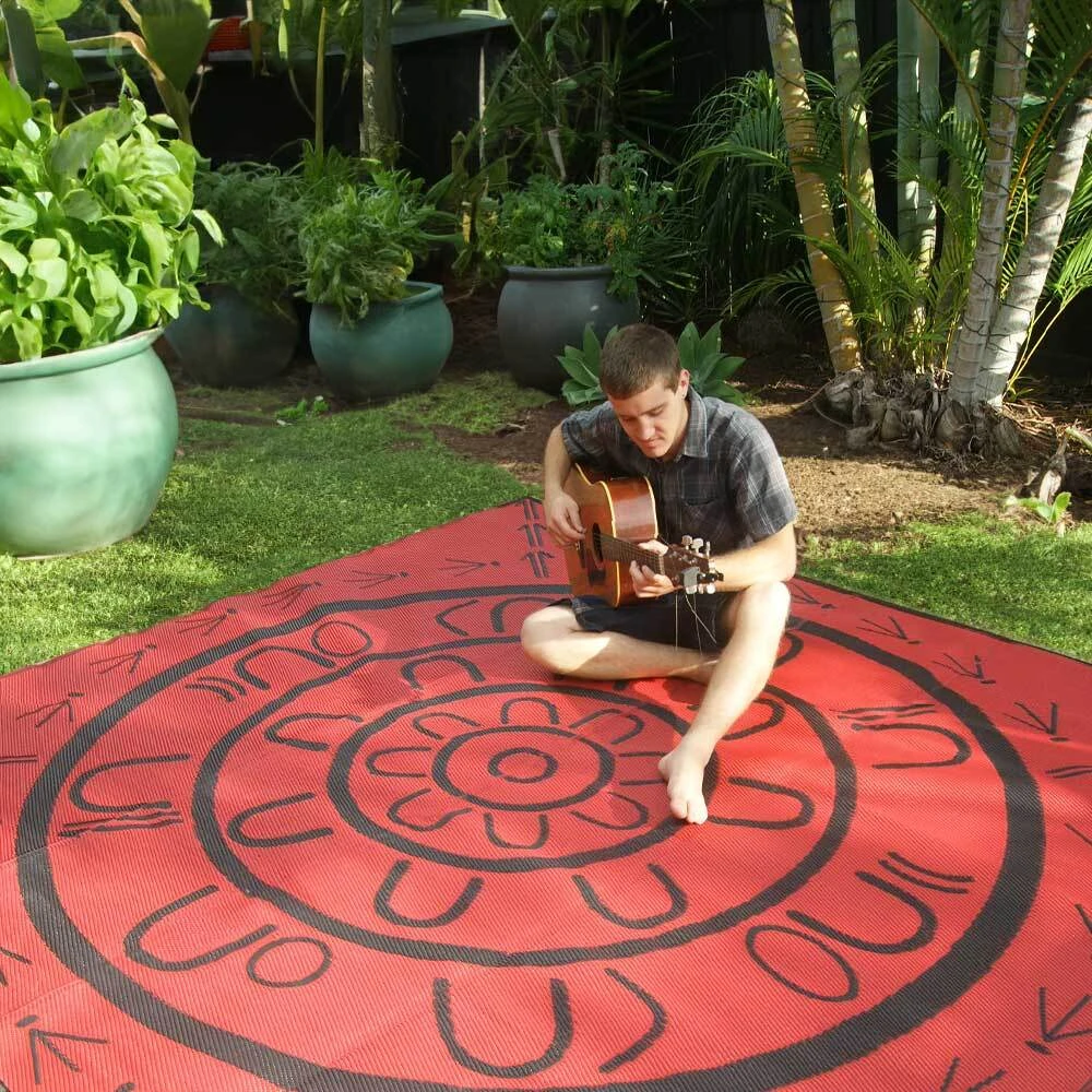 Like all our recycled outdoor mats, The Yarning Circle is durable and easy to clean, as well as comfortable to sit on or walk on. Sand and grass simply shake off, and any heavier soiling can be wiped down or hosed off.