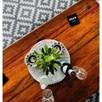 These mats are reversible. Photos show both sides of the same mat. Mat colours may differ slightly from the images shown due to the different inks used in individual print runs. Designed in Australia, manufactured in China or India. NOTE that sizes are +/- 5% due to weaving techniques in manufacturing and may not to be 100% as stated. If using on a slippery surface, non slip mesh recommended underneath.