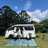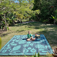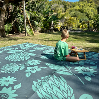 Keep the sand and dirt out of your campsite, trailer, tent or swag with this 3 x 3m Recycled Mat that has nine square metres of area in total. Best part about our mat is that there's no messy grass or sand stuck to it when it's time to pack up. And being reversible, you get two subtle colour choices for display in the one mat.