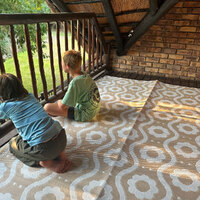 Like all of our unique outdoor mats, this medium size mat is easy to care for, store and transport. They are affordable and make a practical boundary between creepy crawlies, little stones and sticks that may hurt exposed feet, yet still allow air to flow through the mat to help safeguard the ground underneath.