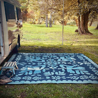 Eco-conscious: Our 'Peacock Promenade Set' proudly represents our commitment to the environment. Crafted from repurposed polypropylene - things like recycled shopping bags and bottles, these mats give new life to discarded materials.