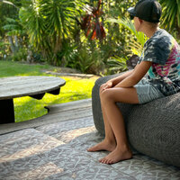 This recycled plastic mat is waterproof, UV treated and perfect for creating a comfortable space at the beach or on picnics. Wipe or broom the dust and dirt away, or if you need a deeper, more thorough clean, simply hose it down.