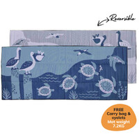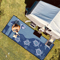 The Marine Life mat is one of our larger size mats so it offers plenty of room for the whole family to gather for meals and wind-down time. Like all our recycled plastic camping and caravan mats, this beautiful blue annex mat is reversible allowing you to use both sides to extend the mat's life for years to come.