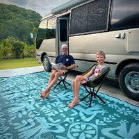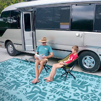 Measuring a generous 2.4x5 metres, this outdoor caravanning & camping mat provides ample space for outdoor gatherings, picnics, beach outings, and camping adventures - a true multi-tasker! Its large size ensures that you can comfortably accommodate friends, family, and loved ones, making every outdoor experience unforgettable. The navy and teal colour combination adds a touch of sophistication and style to any setting. Whether you're lounging by the beach or hosting a picnic in the park, this mat effortlessly elevates your outdoor ambience.
